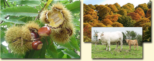 Oltre 40 ettari di terreni coltivati a boschi, castagneti (marroni), noccioleti, frutti di bosco, orti, frutteti, apicoltura e allevamenti bradi e semibradi: cavalli, bovini, suini, cinghiali e ungulati, avicoli e cunicoli.
